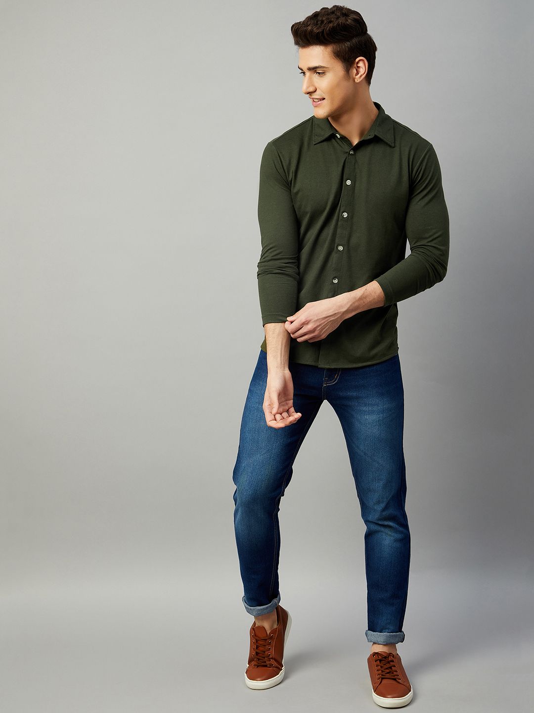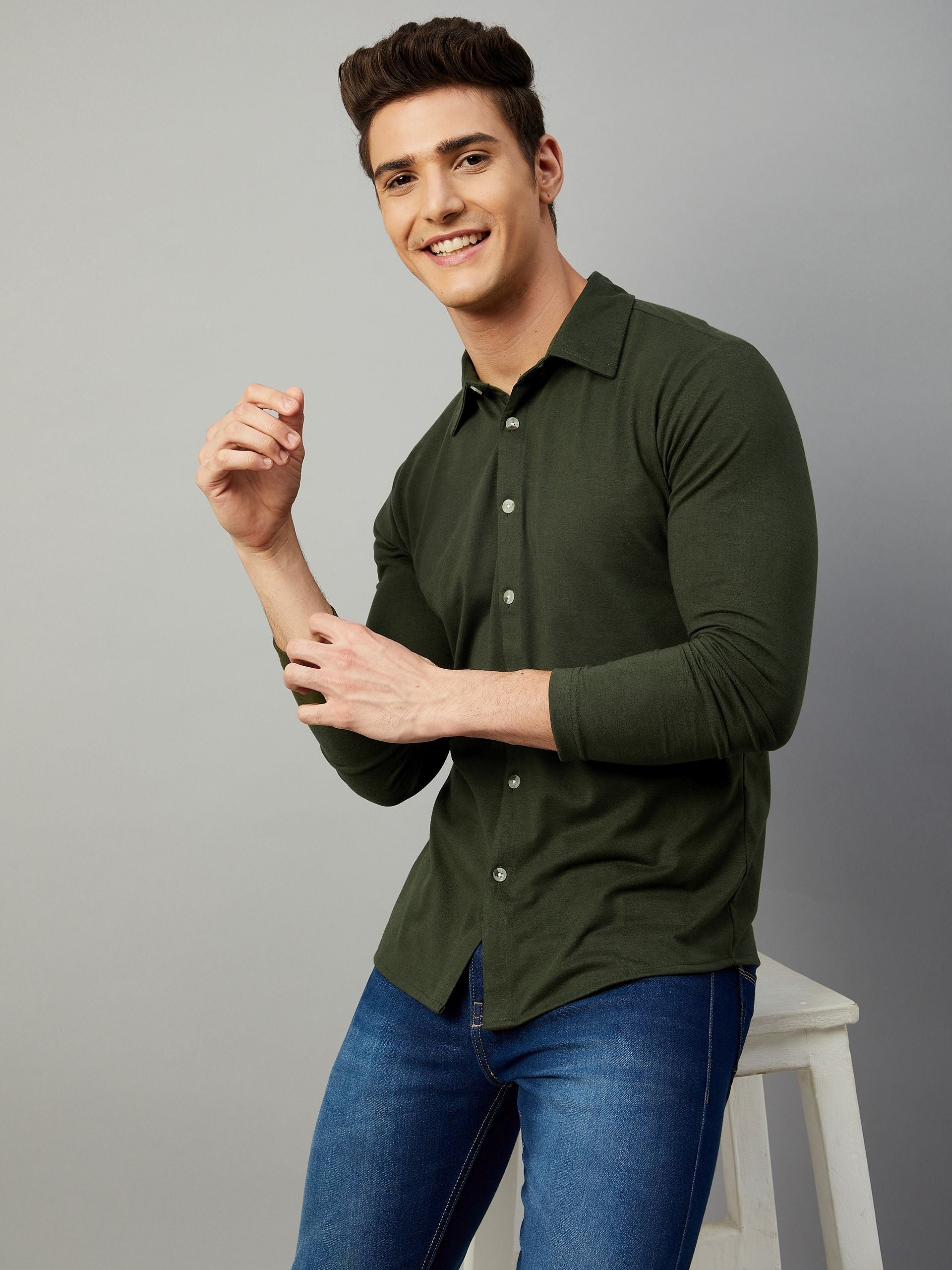 Cotton Blend Solid Full Sleeves Regular Fit Casual Shirt