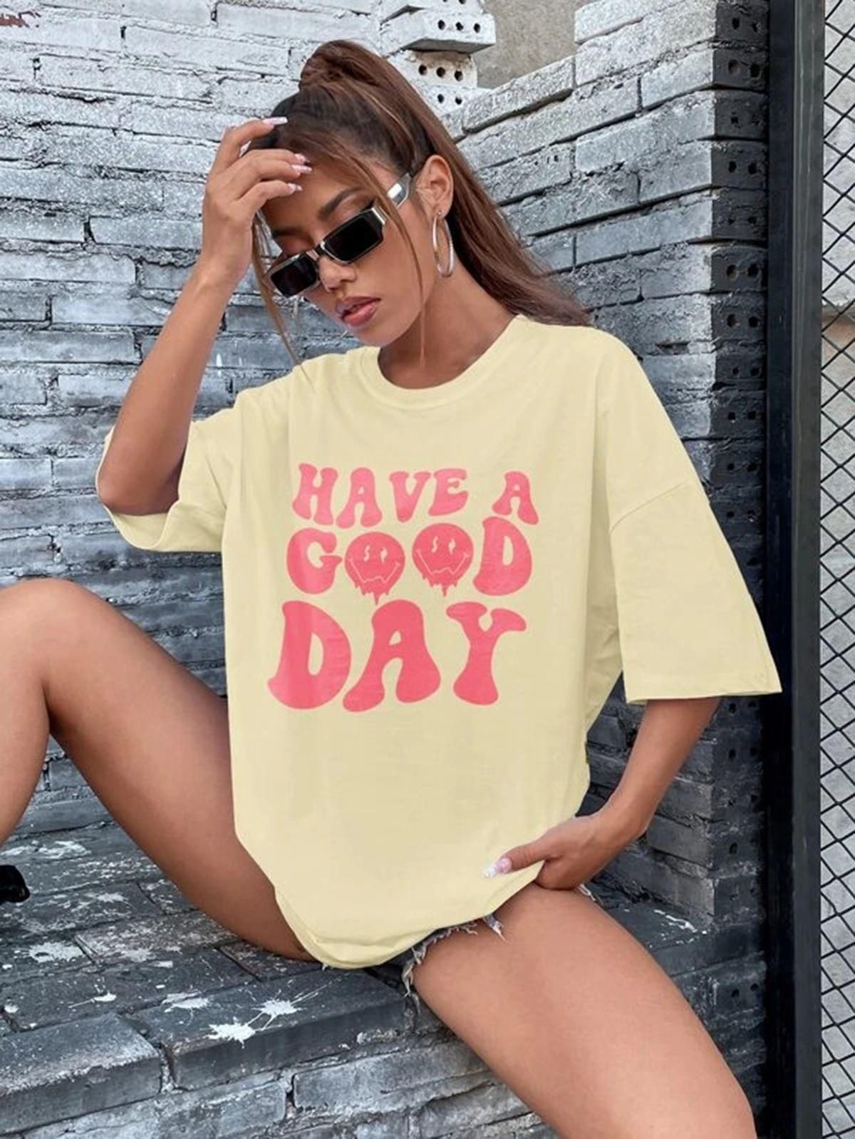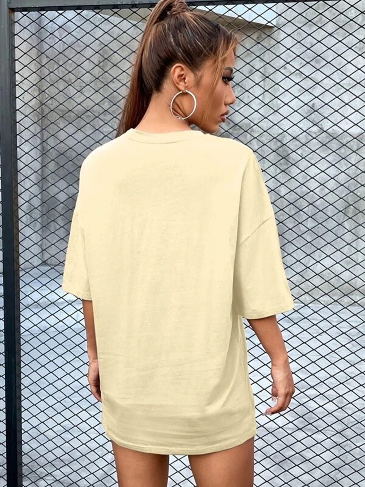 Product Name: Popster Yellow Printed Cotton Round Neck oversized Fit Half Sleeve Womens T-Shirt