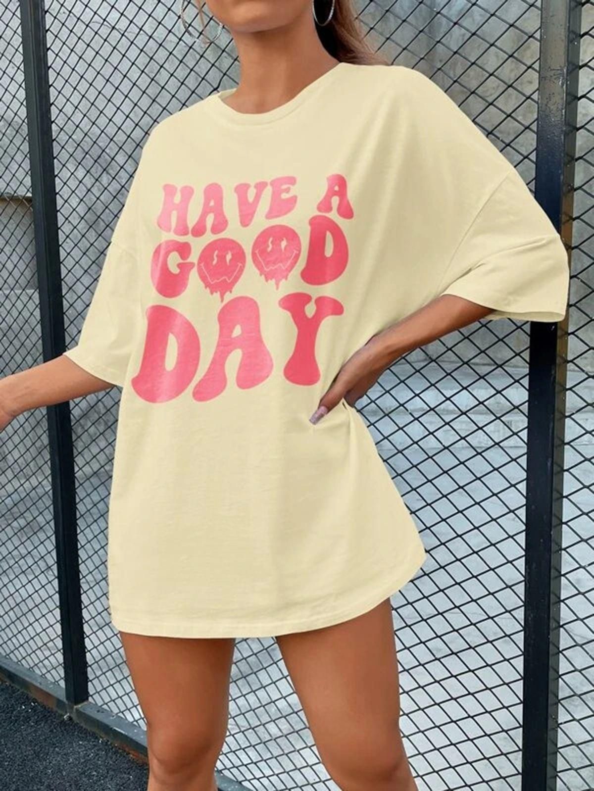 Popster Yellow Printed Cotton Round Neck oversized Fit Half Sleeve Womens T-Shirt