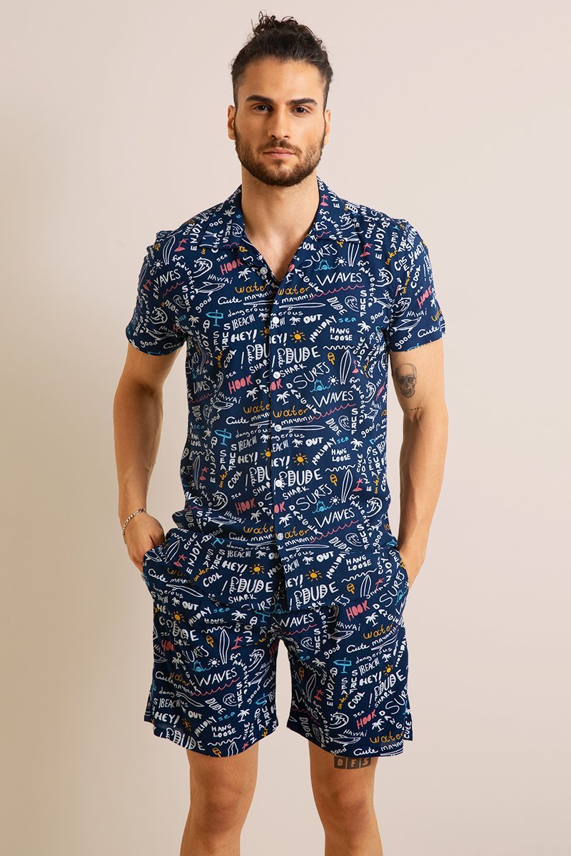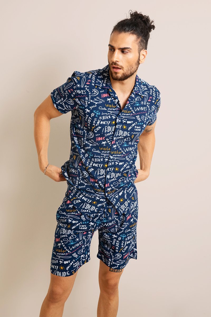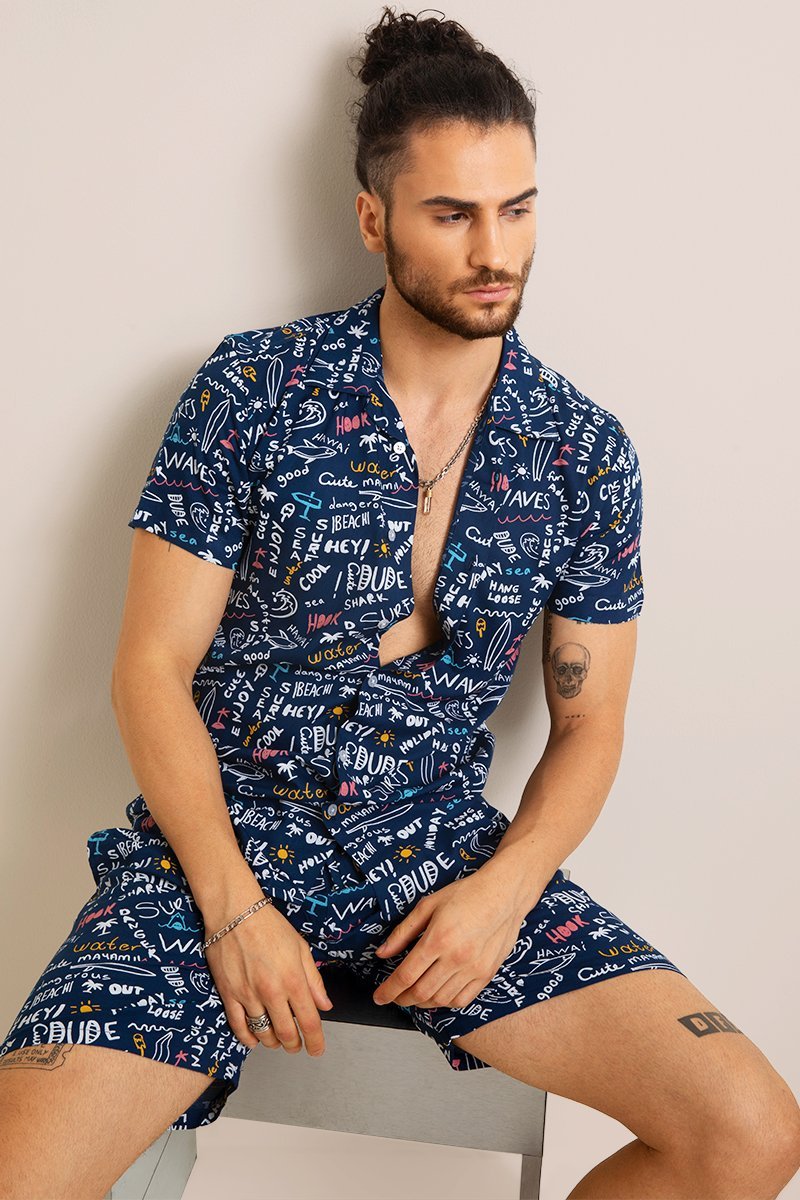 Getdealz presents Scrabbed Comma Set. These Funk sets are designed with Scrabbled Words Print on Lightweight Fabric. Comes with an elegant design, which makes them perfect for summer holidays and weekends. The premium fabric gives these shirts and boxers a smooth feel that is comfortable against your skin.